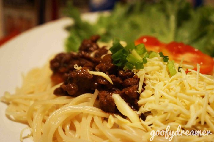 Okay sekarang platting, sangat mudah, ambil spaghetti taruh daging cincang diatas dan taburi dengan keju. Agar tambah maknyus siram minyak zaitun diatas spagethi dan Tarra! Selamat makan :)