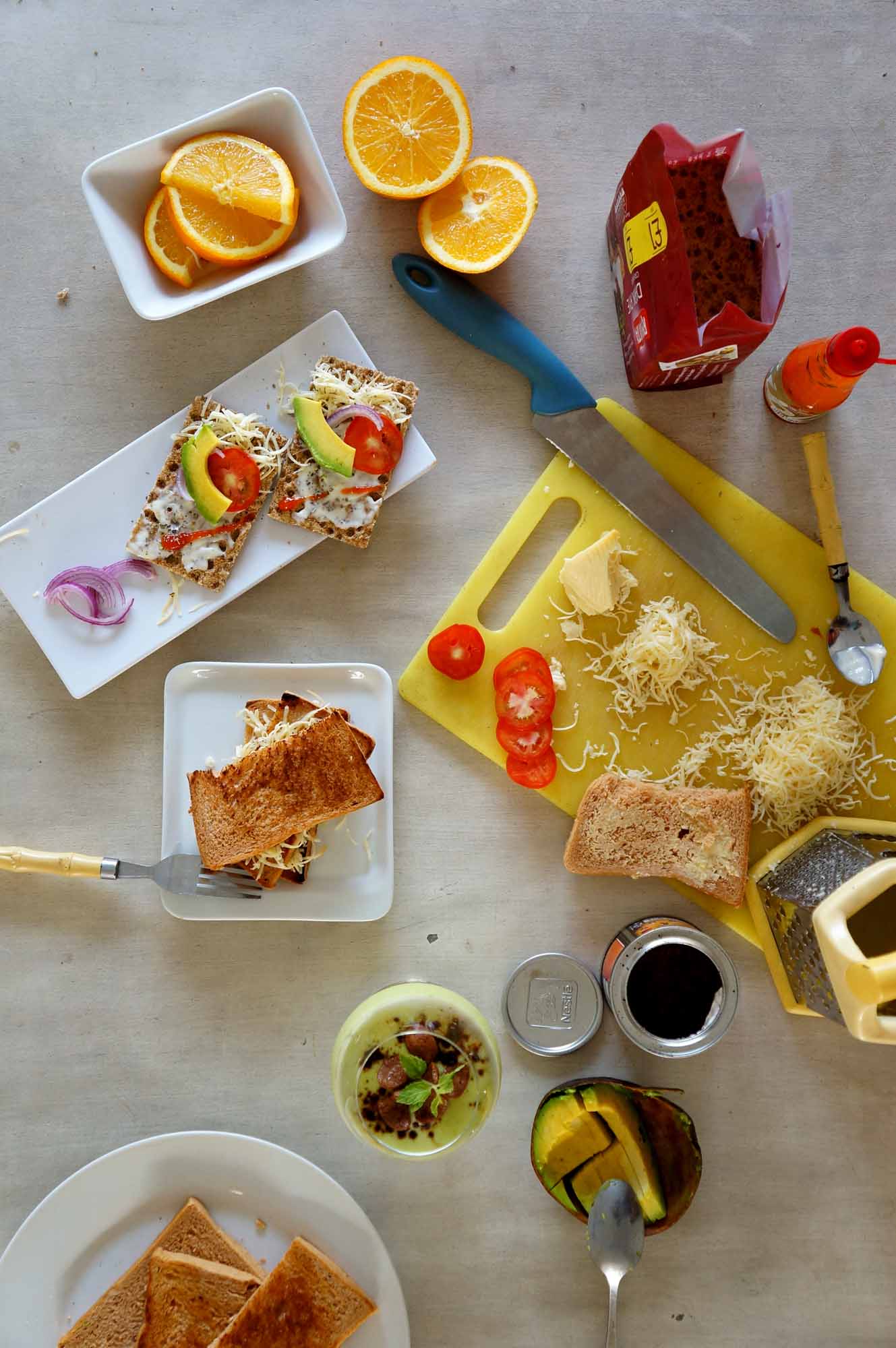 Okay, lemme tell you, all these pictures on this post are taken this morning, as usual, preparing breakfast could be a big deal if, yes, IF I have short time and I had. My main food was few slices of pan roasted brown bread (I should have a toaster huh! I know *yawn). Side dish was Ryvita Dark Rye Cripsbread that I served with super simple yummy topping. I spread mayo, put pinch of grated cheddar cheese, tiny slices of fresh tomato, small red onion, and small chili sauce. Oh I still had slices of fresh avocado on it. Ah fellas, you have to try to taste that cripsbread with that topping, I’m serious it was melted in my mouth.