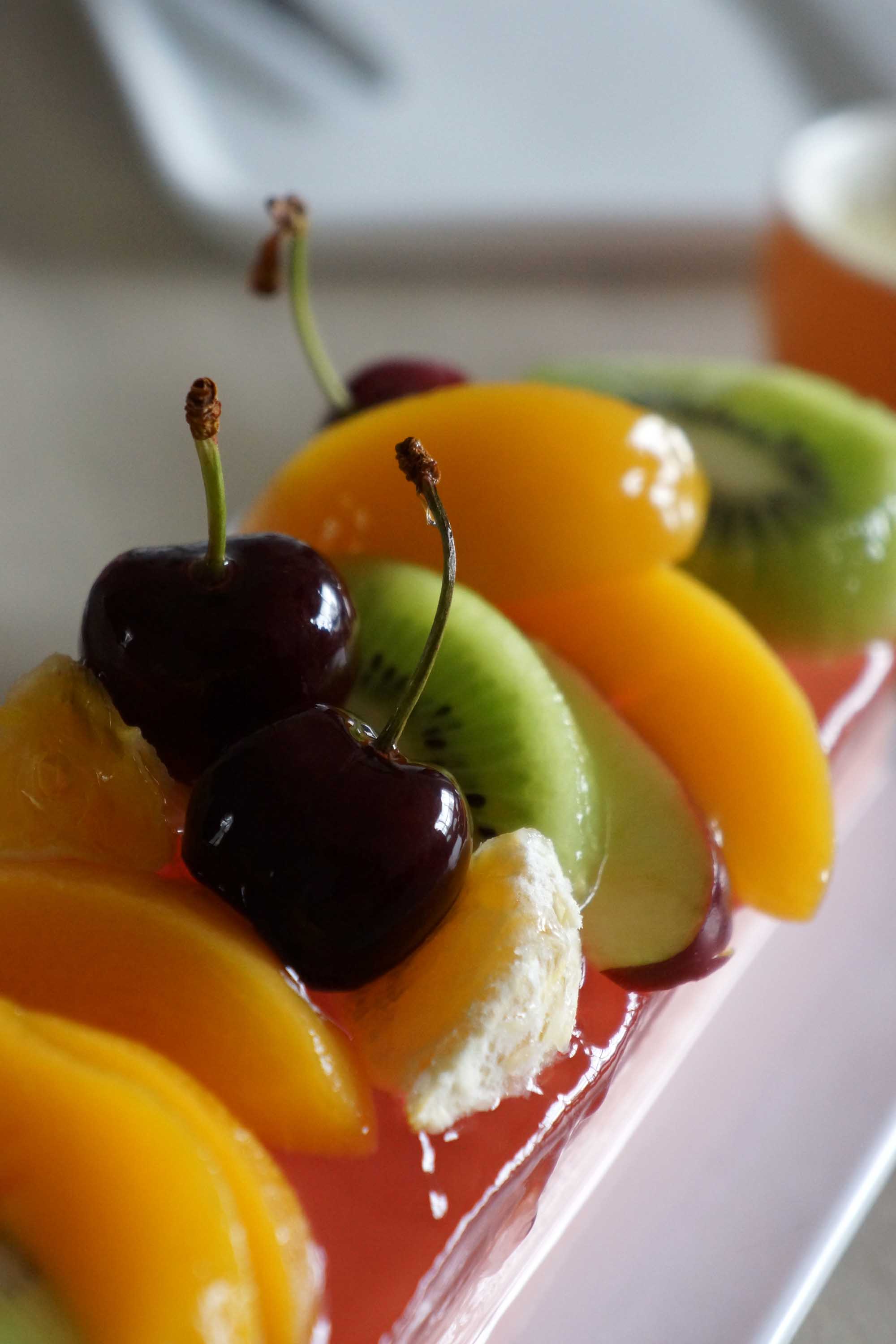 So After I cooked Semur that day then I decided to cook this pudding, combining creamy milk pudding under and juicy jelly on top and colorful fruits for topping. This kind of dessert is really easy to make and enjoying this after meal is yummy indeed! :D the simplest dessert that I really enjoy to cook and eat!. Those fruits made me giddy to capture more and more. The colors hah? Oh.